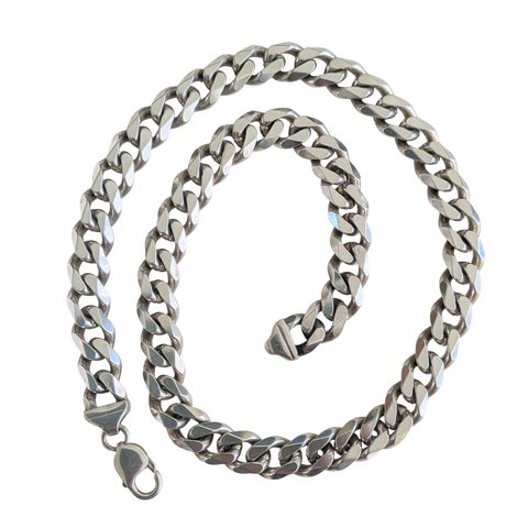 Heavy Diamond Cut Silve rCurb Neck Chain