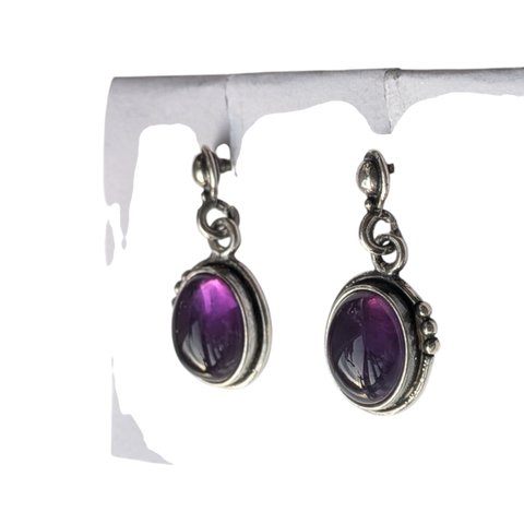 Amethyst gemstones handset in silver with dotted embelishments on one side.